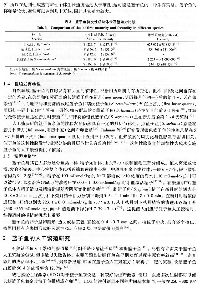 籃子魚(yú)繁殖生物學(xué)研究進(jìn)展3