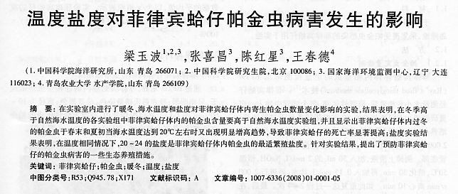 溫度鹽度對菲律賓蛤仔帕金蟲病害發(fā)生的影響