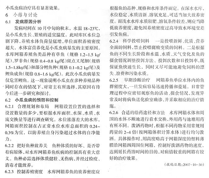 水庫網(wǎng)箱養(yǎng)魚暴發(fā)小瓜蟲病的診治報告2