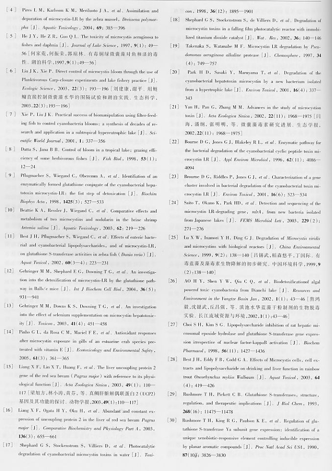 水產(chǎn)生物對(duì)微囊藻毒素去毒分子機(jī)理及調(diào)控因子研究5