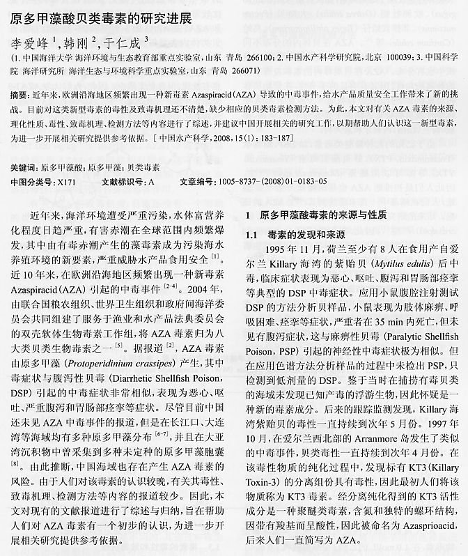 原多甲藻酸貝類毒素的研究進(jìn)展1
