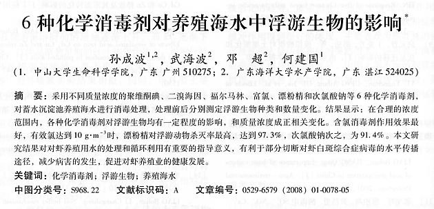 6種化學(xué)消毒劑對(duì)養(yǎng)殖海水中浮游生物的影響