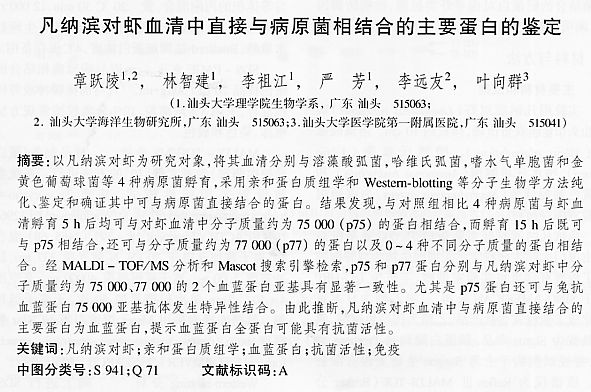 凡納濱對蝦血清中直接與病原菌相結(jié)合的主要蛋白的鑒定