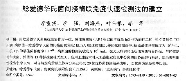 鯰愛德華氏菌間接酶聯(lián)免疫快速檢測法的建立