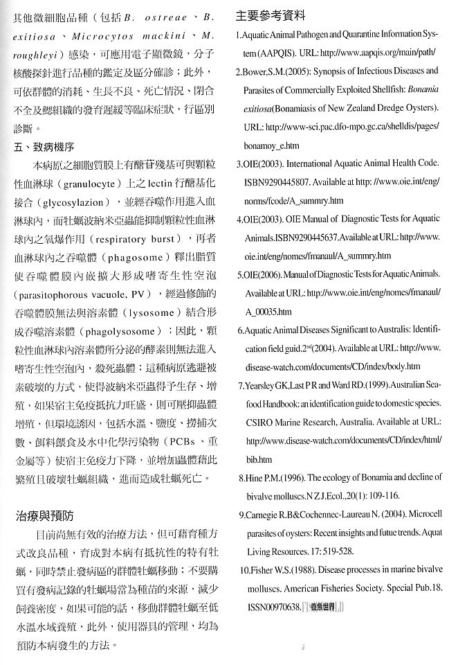 牡蠣波納米亞蟲、微小細胞病、牡蠣血淋球病3