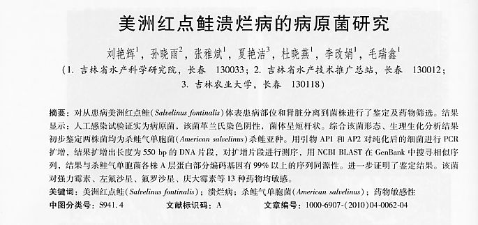 美洲紅點(diǎn)鮭潰爛病的病原菌研究