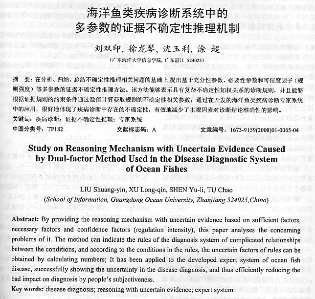 海洋魚類疾病診斷系統(tǒng)中的多參數(shù)的證據(jù)不確定性推理機制