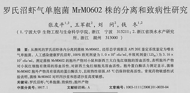 羅氏沼蝦氣單胞菌MrM0602株的分離和致病性研究