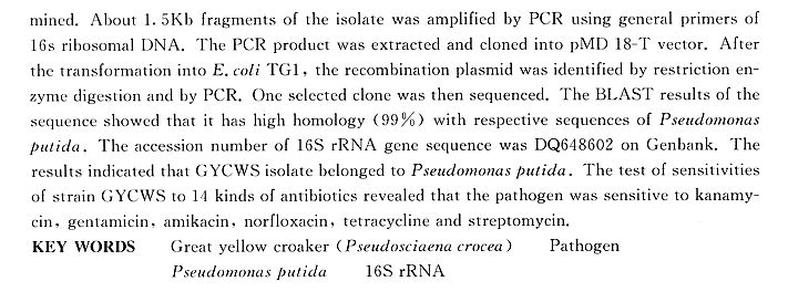 網(wǎng)箱養(yǎng)殖大黃魚假單胞菌病病原的分離與鑒定2
