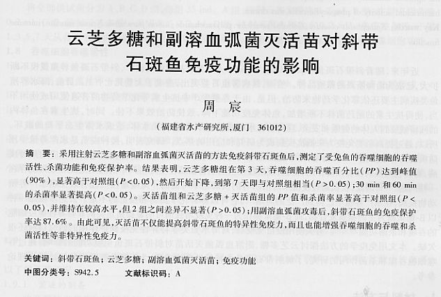 云芝多糖和副溶血弧菌滅火苗對(duì)斜帶石斑魚免疫功能的影響