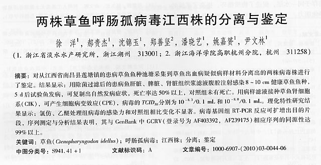 兩株草魚呼腸病毒江西株的分離與鑒定