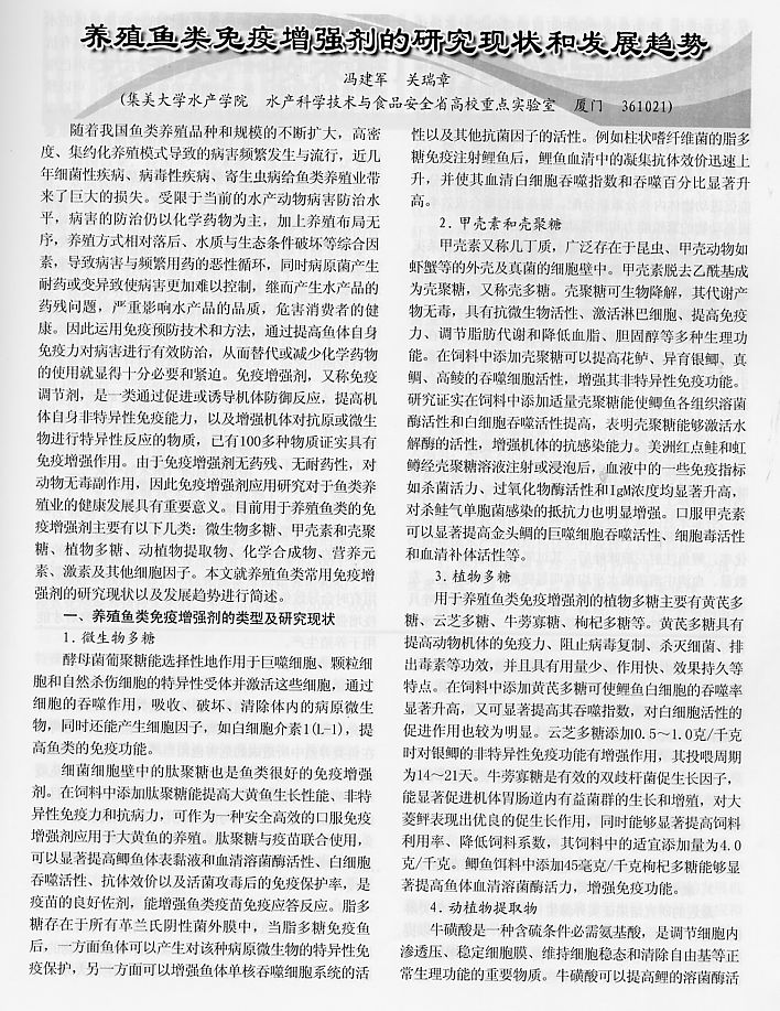 養(yǎng)殖魚類免疫增強(qiáng)劑的研究現(xiàn)狀和發(fā)展趨勢1