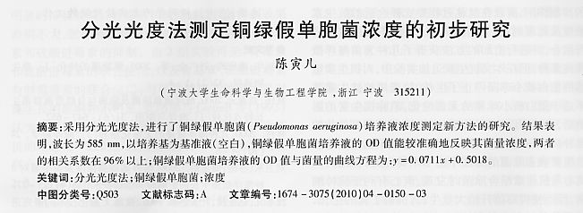 分光光度法則定銅綠假單胞菌濃度的初步研究
