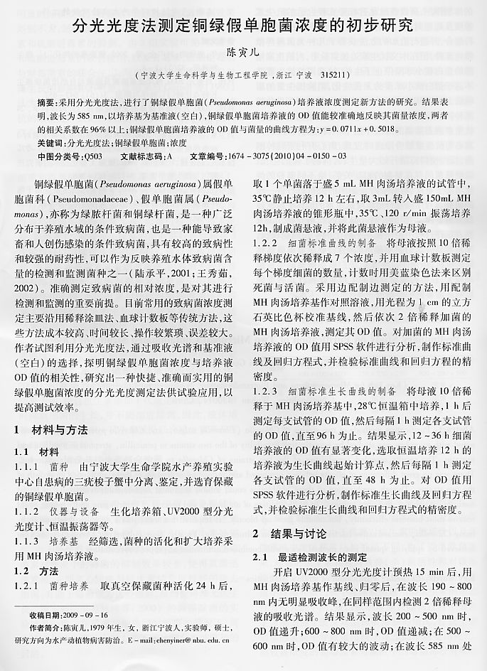 分光光度法則定銅綠假單胞菌濃度的初步研究1