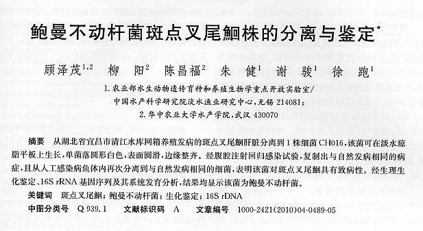 鮑曼不動(dòng)桿菌斑點(diǎn)叉尾鮰株的分離與堅(jiān)定
