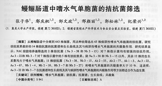 鰻鱺腸道中嗜水氣單胞菌的拮抗菌篩選