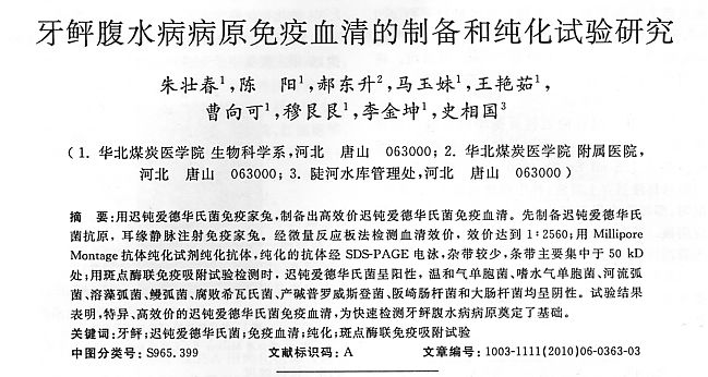 牙鲆腹水病病原免疫血清的制備和純化實驗研究