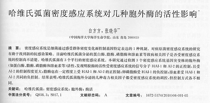 哈維氏弧菌密度感應系統(tǒng)對幾種胞外酶的活性影響