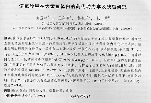 諾氟沙星在大黃魚(yú)體內(nèi)的藥代動(dòng)力學(xué)及殘留研究