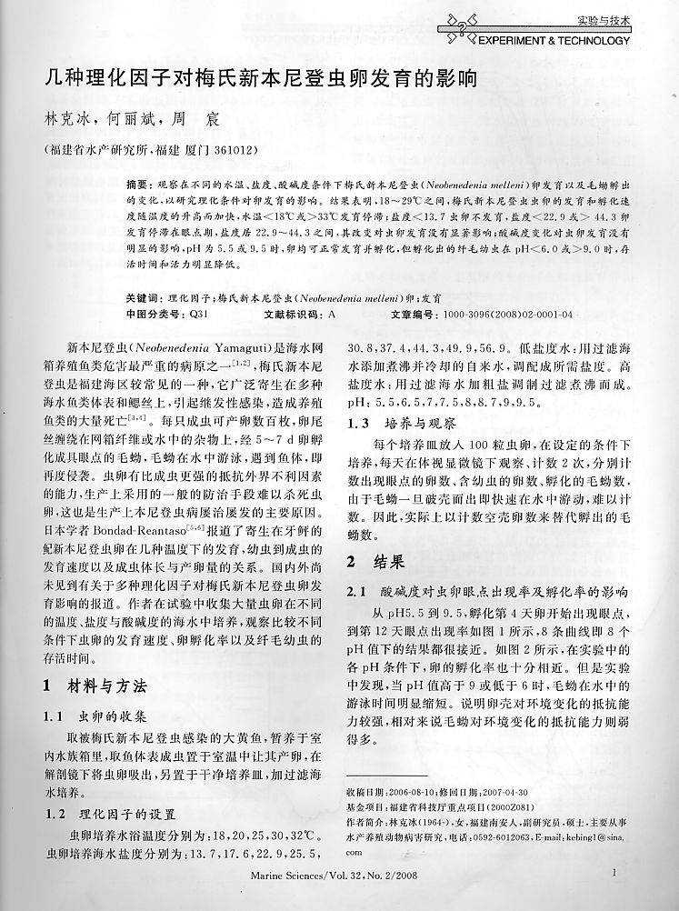 幾種理化因子對梅氏新本尼登蟲卵發(fā)育的影響1