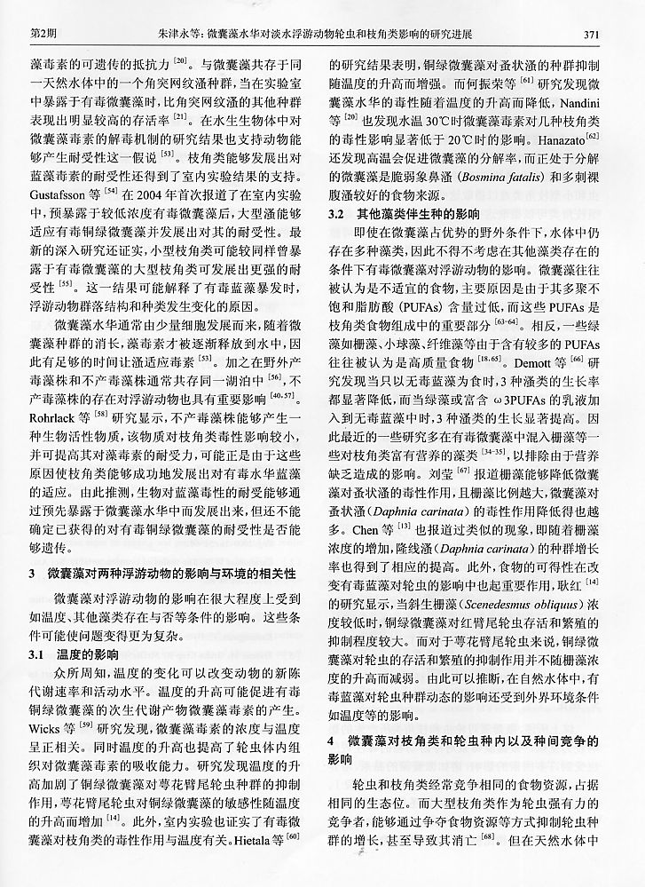 微囊藻水華對淡水浮游動物輪蟲和枝角類影響的研究進展5
