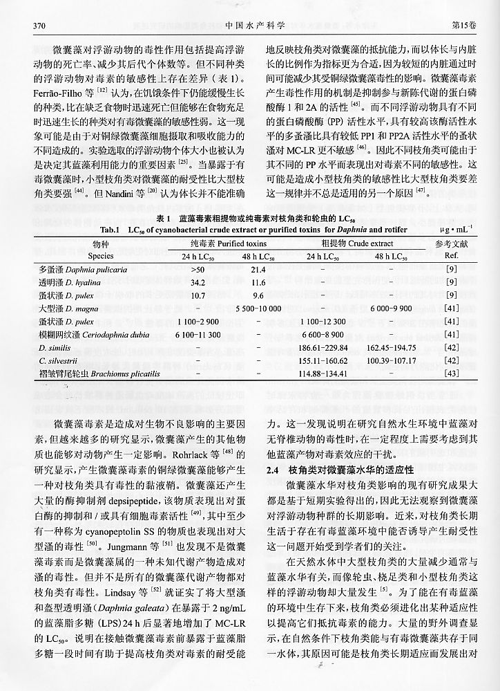 微囊藻水華對(duì)淡水浮游動(dòng)物輪蟲和枝角類影響的研究進(jìn)展4