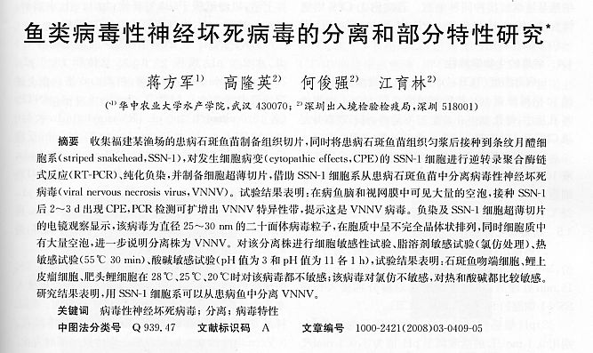 魚類病毒性神經(jīng)壞死病毒的分離和部分特性研究