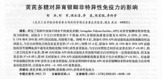 黃芪多糖對異育銀鯽非特異性免疫力的影響