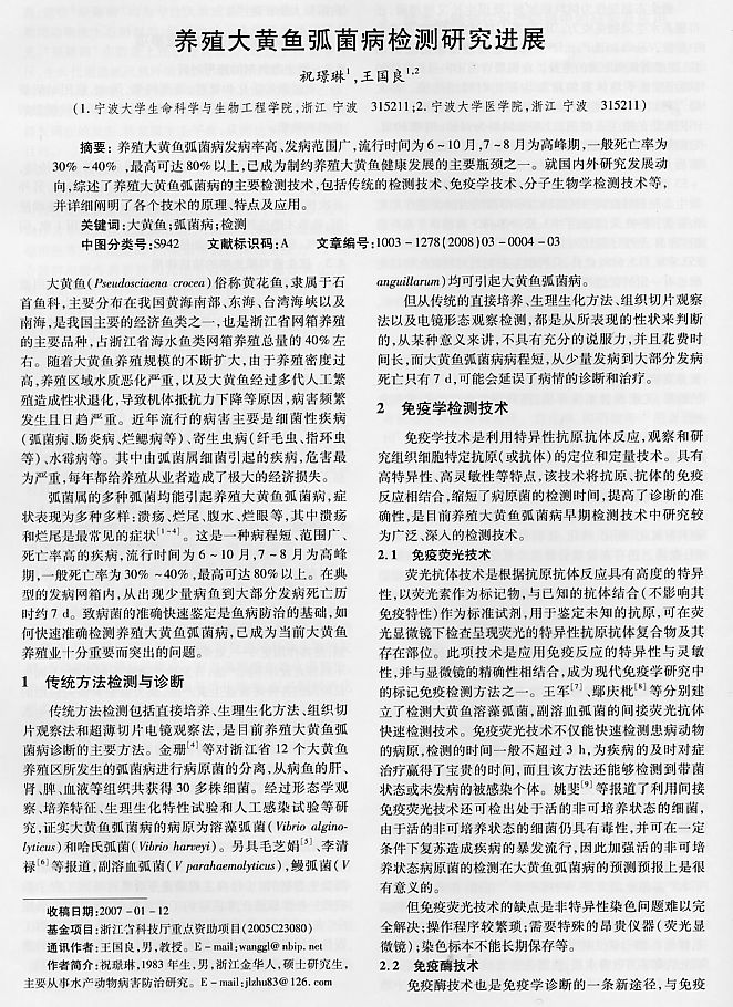 養(yǎng)殖大黃魚弧菌病檢測研究進展1