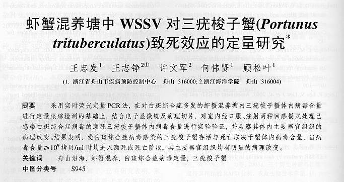 蝦蟹混養(yǎng)塘中WSSV對(duì)三疣梭子蟹(Portunus trituberculatus)致死效應(yīng)的定量研究
