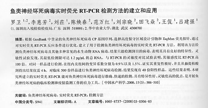 魚類神經(jīng)壞死病毒實時熒光RT-PCR檢測方法的建立和應用