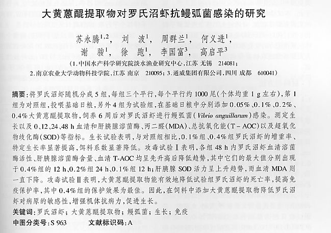 大黃蒽醌提取物對羅氏沼蝦抗鰻弧菌感染的研究