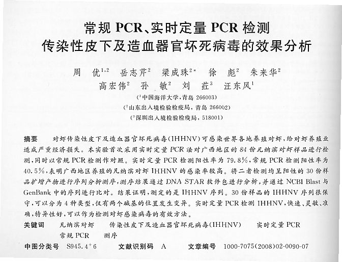 常規(guī)PCR、實時定量PCR檢測傳染性皮下及造血器官壞死病毒的效果分析1