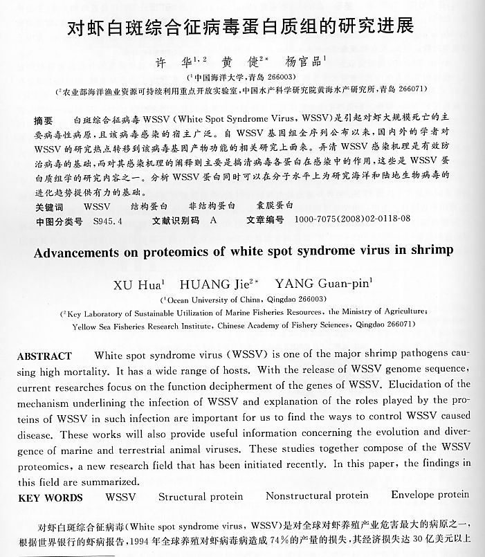 對(duì)蝦白斑綜合癥病毒蛋白質(zhì)組的研究進(jìn)展1