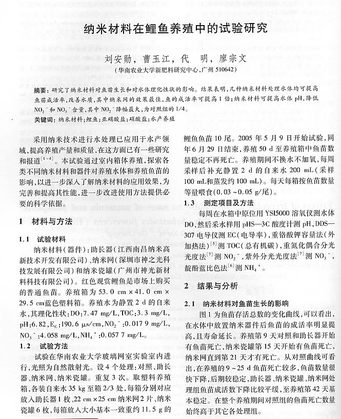 納米材料在鯉魚養(yǎng)殖中的實(shí)驗(yàn)研究1