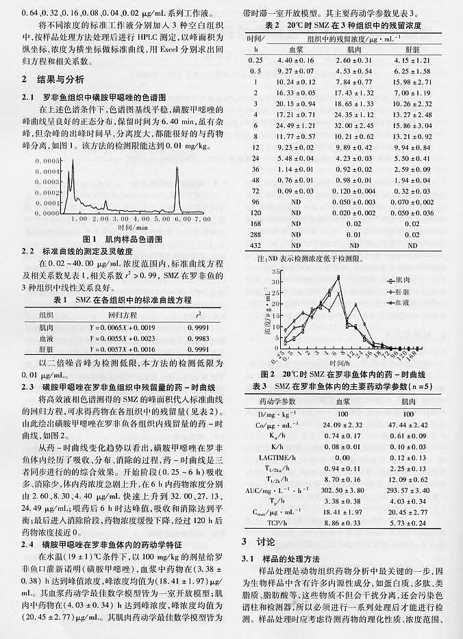 磺胺甲噁唑在羅非魚體內(nèi)的藥代動力學及組織濃度研究2