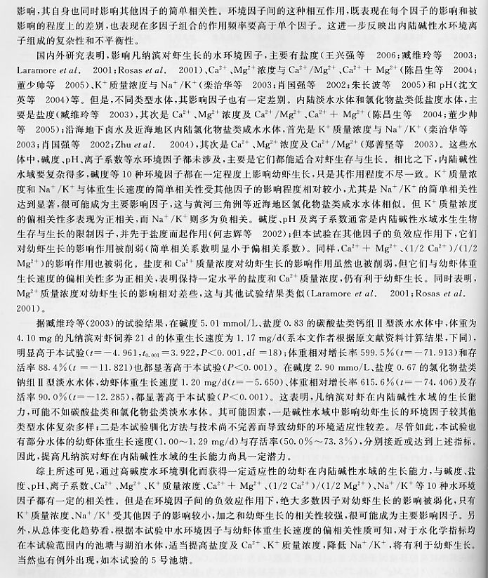 內(nèi)陸堿性水域凡納濱對嚇生長與環(huán)境因子的關(guān)系8