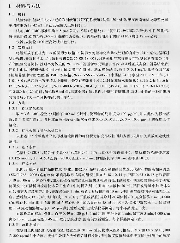 孔雀石綠及其主要代謝產(chǎn)物在歐洲鰻鱺體內(nèi)的蓄積及消除規(guī)律3