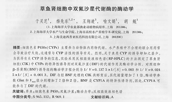草魚腎細胞中雙氟沙星代謝酶的酶動學
