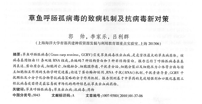 草魚呼腸孤病毒的致病機(jī)制及抗病毒新對策