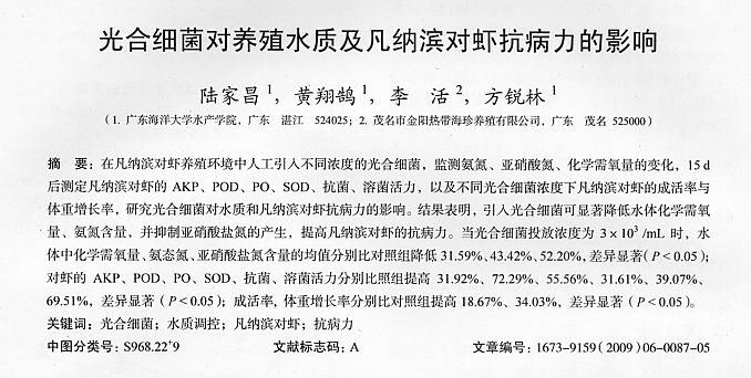 光合細(xì)菌對養(yǎng)殖水質(zhì)及凡納濱對蝦抗病力的影響
