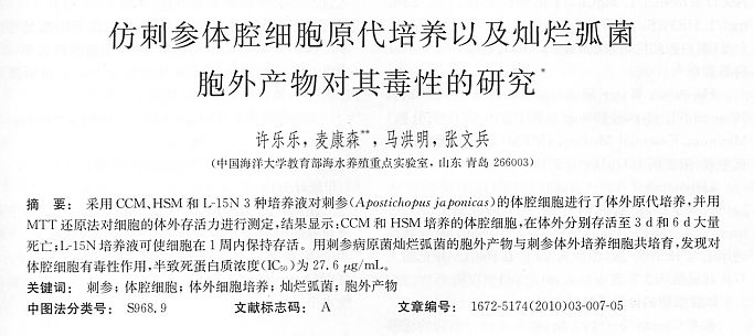 仿刺參體腔細(xì)胞原代培養(yǎng)以及燦爛弧菌胞外產(chǎn)物對(duì)其毒性的研究