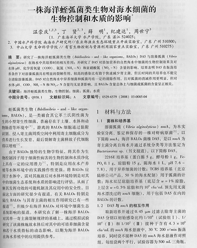 一株海洋蛭弧菌類生物對(duì)海水細(xì)菌的生物控制和水質(zhì)的影響1