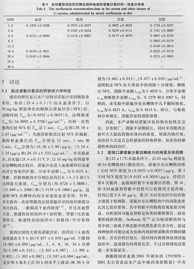 諾氟沙星在鯽體內(nèi)的藥動學(xué)及殘留研究4