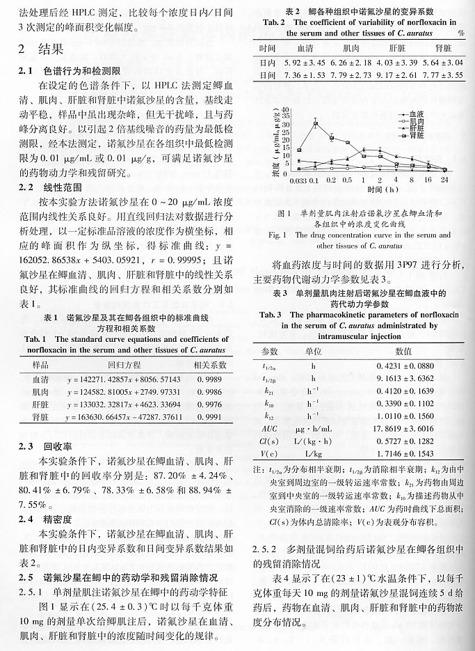 諾氟沙星在鯽體內(nèi)的藥動(dòng)學(xué)及殘留研究3