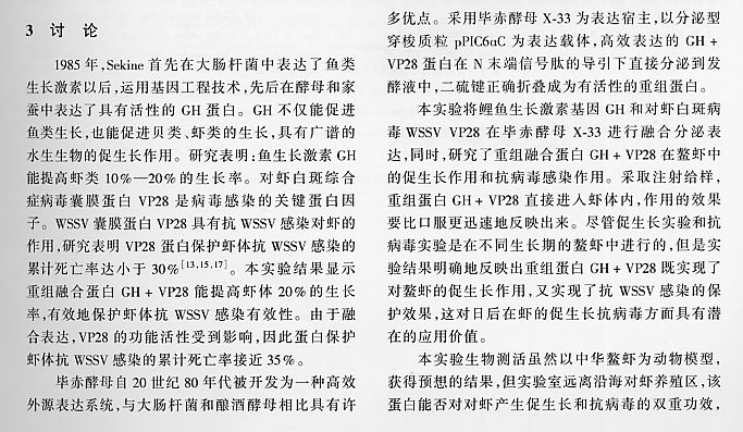 鯉魚生長激素和對蝦白斑病毒囊膜蛋白VP28的融合表達(dá)及功能研究2