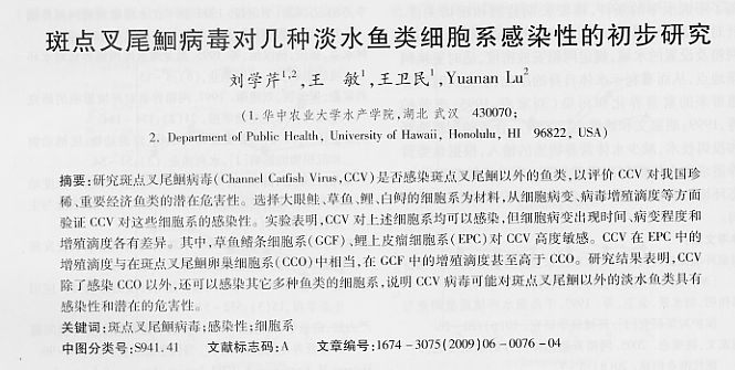斑點(diǎn)叉尾鮰病毒對(duì)幾種淡水魚(yú)類(lèi)細(xì)胞系感染性的初步研究
