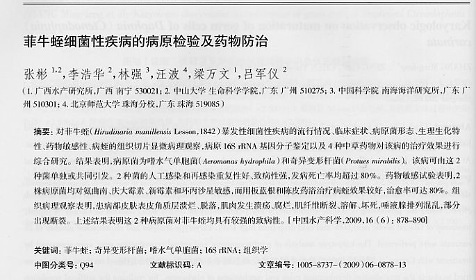 菲牛蛭細(xì)菌性疾病的病原檢驗(yàn)及藥物防治