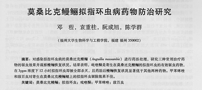 莫桑比克鰻鱺擬指環(huán)蟲病藥物防治研究