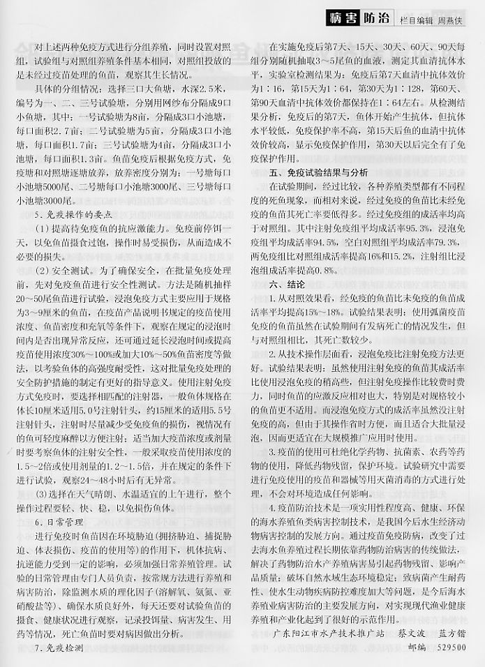 海水魚類弧菌病免疫防治技術(shù)研究2